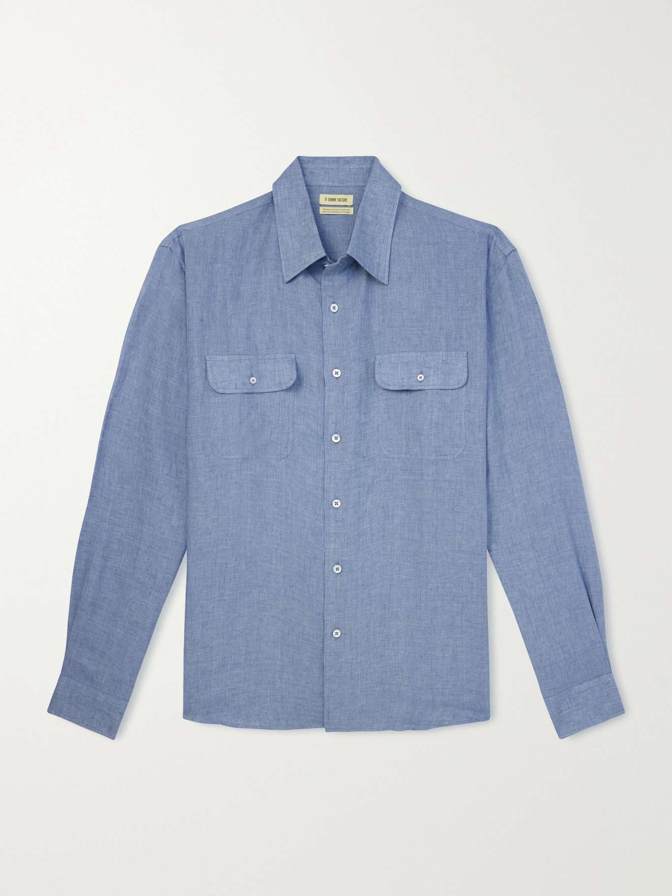 Cut from chambray linen, this shirt by De Bonne Facture balances workwear references with a refined hand. The lightweight cloth offers natural breathability, while flap chest pockets and a structured collar lend definition to its relaxed silhouette.