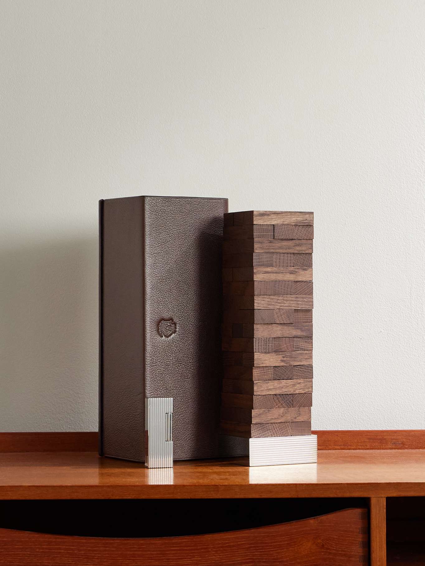 Elevate your games night courtesy of Dunhill's topple blocks. They've has been meticulously handmade from English oak and sit atop a steel base — so it can be stacked as an art piece too. It's accompanied by a leather slip case and palladium-plated Rollagas lighter.