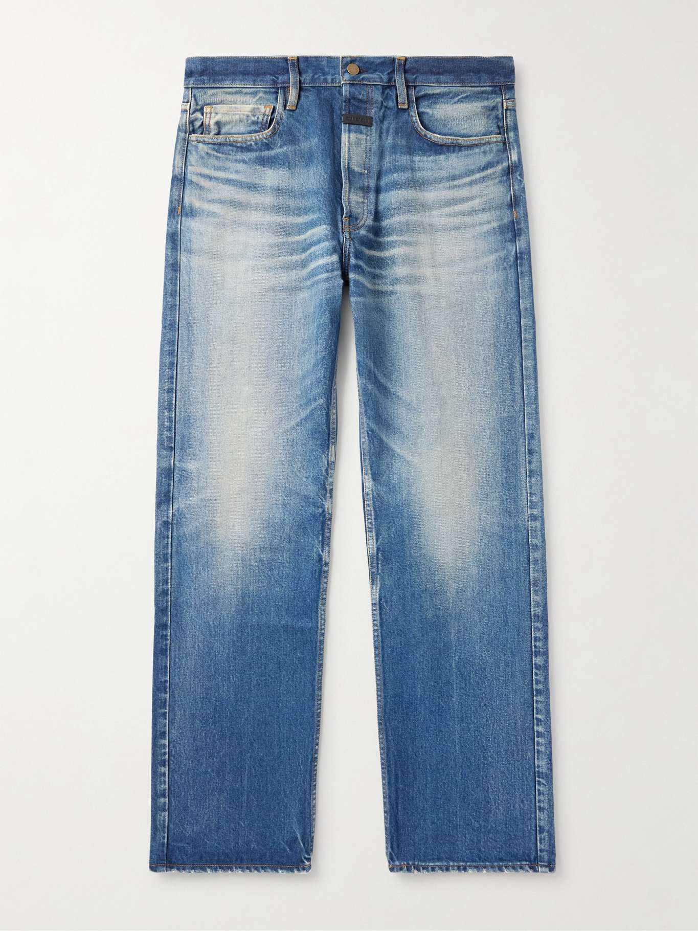 Fear of God's jeans have been expertly made in Japan, drawing on the area's local expertise in denim craft. Hand-distressed for a vintage look and feel, they're cut for a relaxed-straight fit and appliquéd with a signature logo.