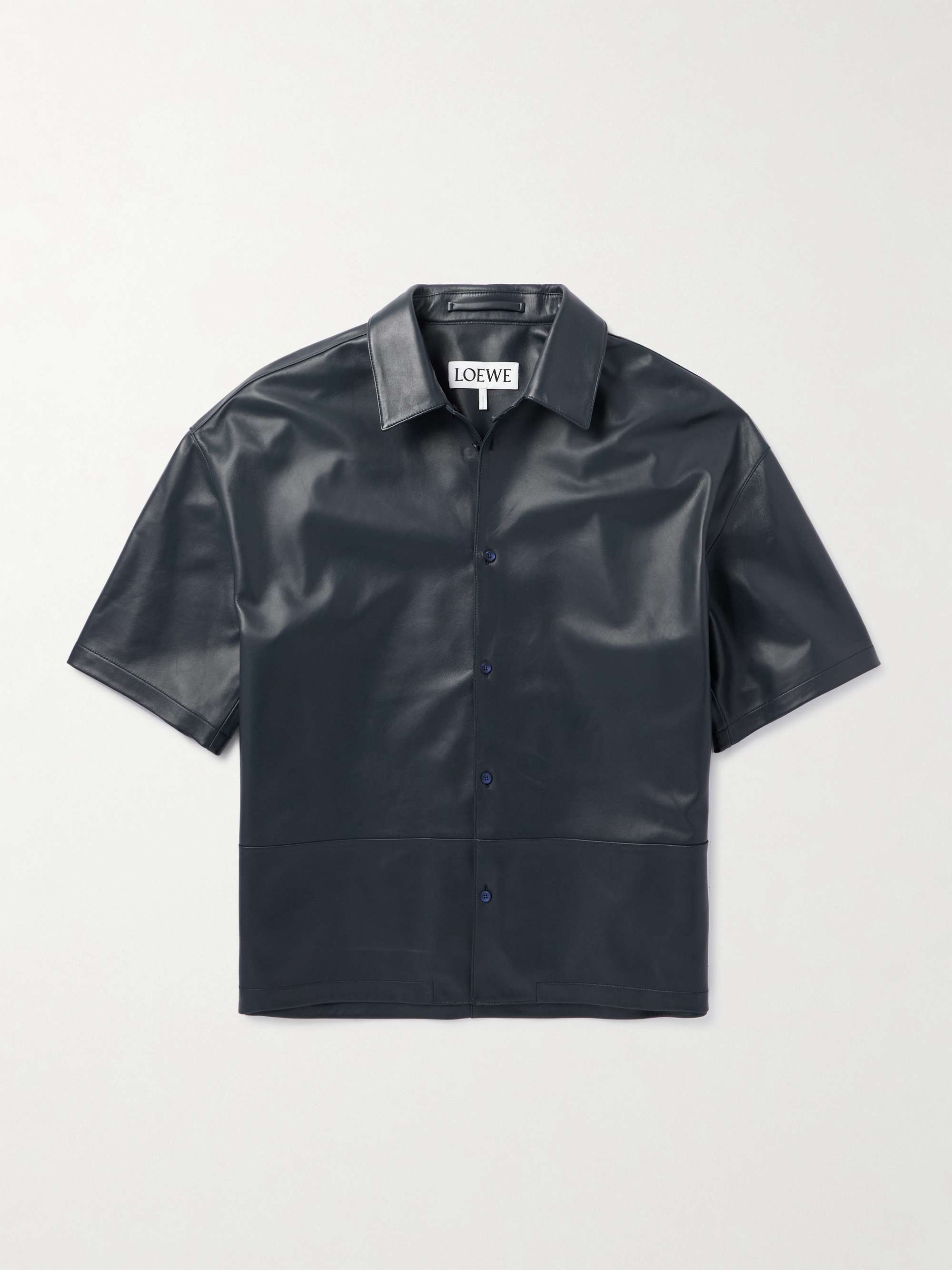 LOEWE Anagram Logo-Embossed Panelled Leather Shirt