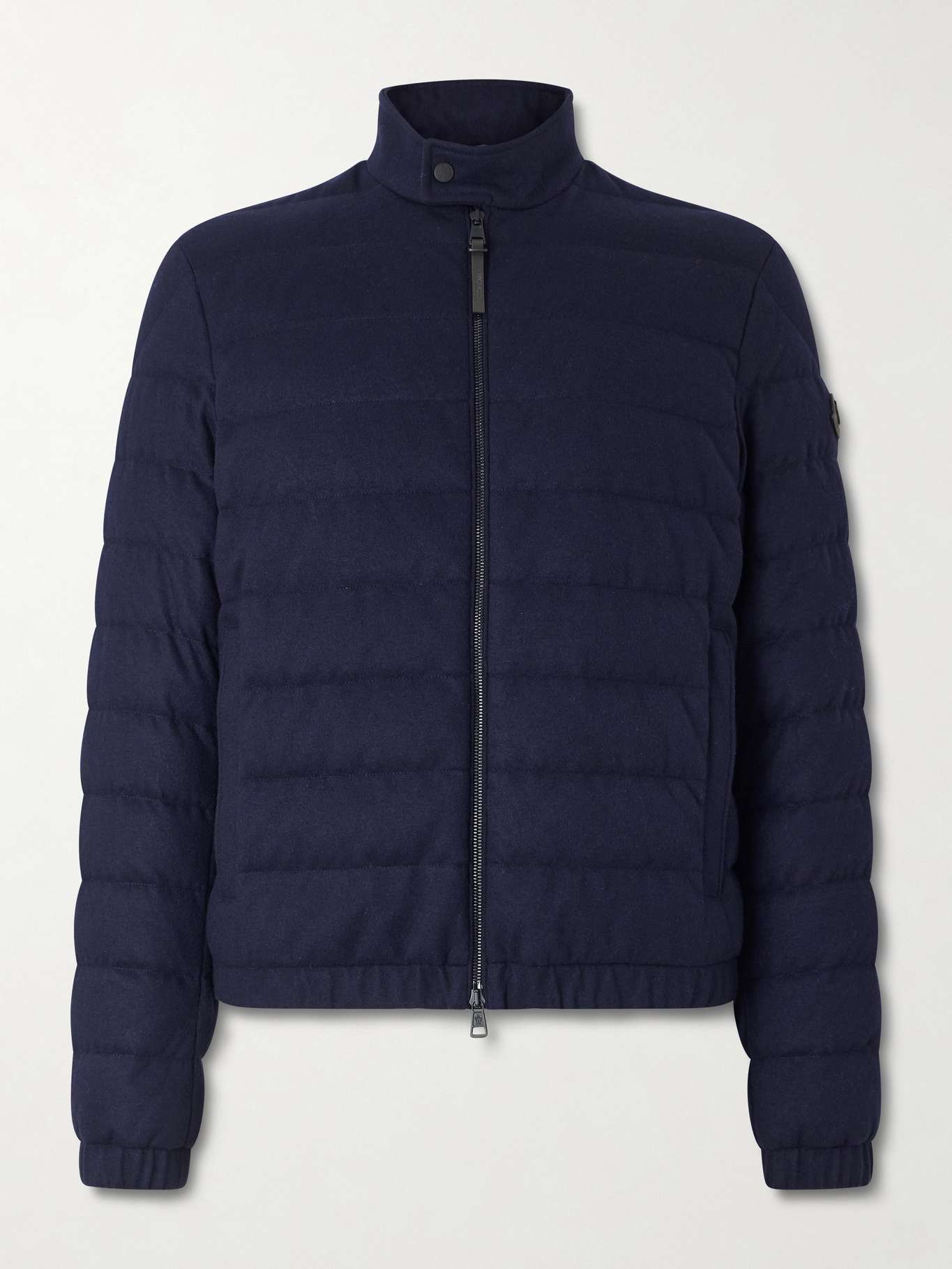 Moncler's 'Luray' jacket is made from technical jersey, which blends cashmere and nylon for a warm yet lightweight feel. Accented by tonal leather details at the zip and shoulder, it's packed with down to maximize heat retention. Elasticated trims and a snap-fastening throat latch offer further protection from the elements.