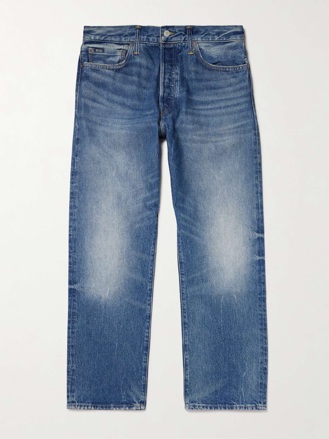Polo Ralph Lauren's jeans have faded thighs with whiskering below the pockets to suggest they've been broken-in. They're cut for a straight-leg fit and have the label's signature coin slot.