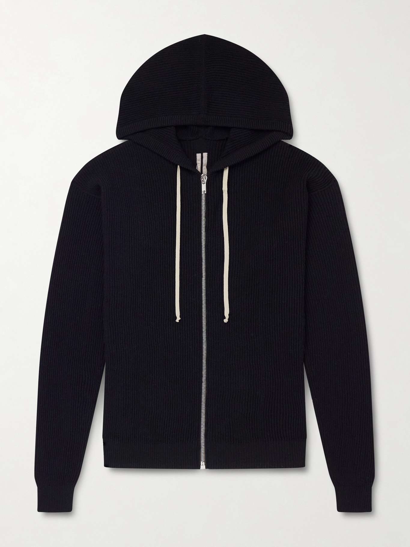 RICK OWENS Ribbed Virgin Wool Zip-Up Hoodie