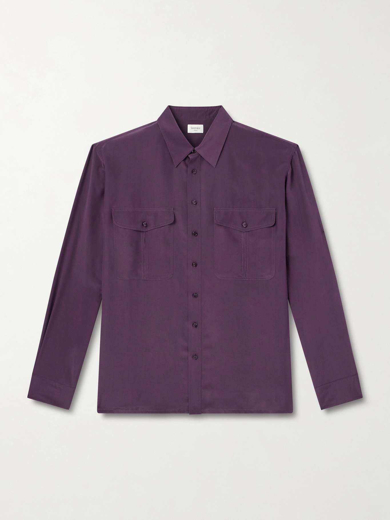 SAINT LAURENT's voile shirt is blended with plenty of silk, so it drapes elegantly over your frame. It has a pointed collar and buttoned pockets on the chest. Lightly padded shoulders and pinched pleats at the back yoke enhance the tailored finish.