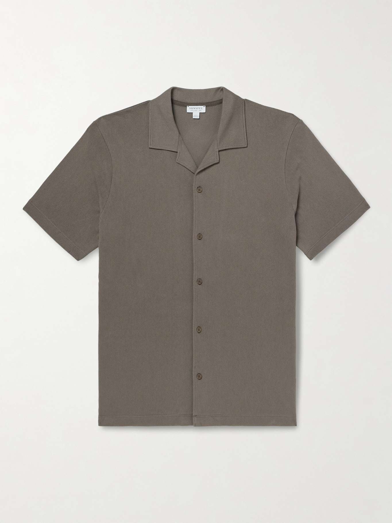 SUNSPEL Slim-Fit Camp-Collar Supima Cotton-Mesh Shirt
