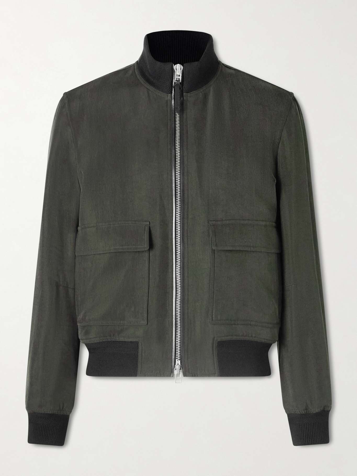 TOM FORD re-imagines the bomber jacket with a focus on ease and polish. Cut from gabardine, it's accented by a leather-trimmed zipper, polished silver-tone hardware and ribbed trims. Flap pockets channel the original's utilitarian feel.
