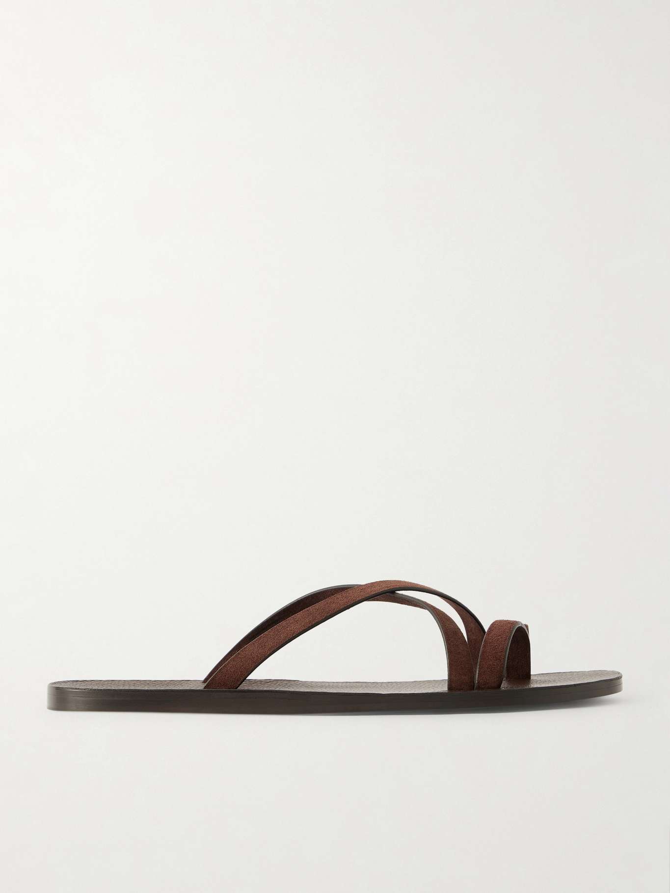 TOM FORD's 'Alfred' sandals are defined by slim suede straps, with a crisscrossing pair at the centre. They rest on grained-leather footbeds stamped with the brand's name at the heel. Style yours with a linen set and aviator sunglasses.