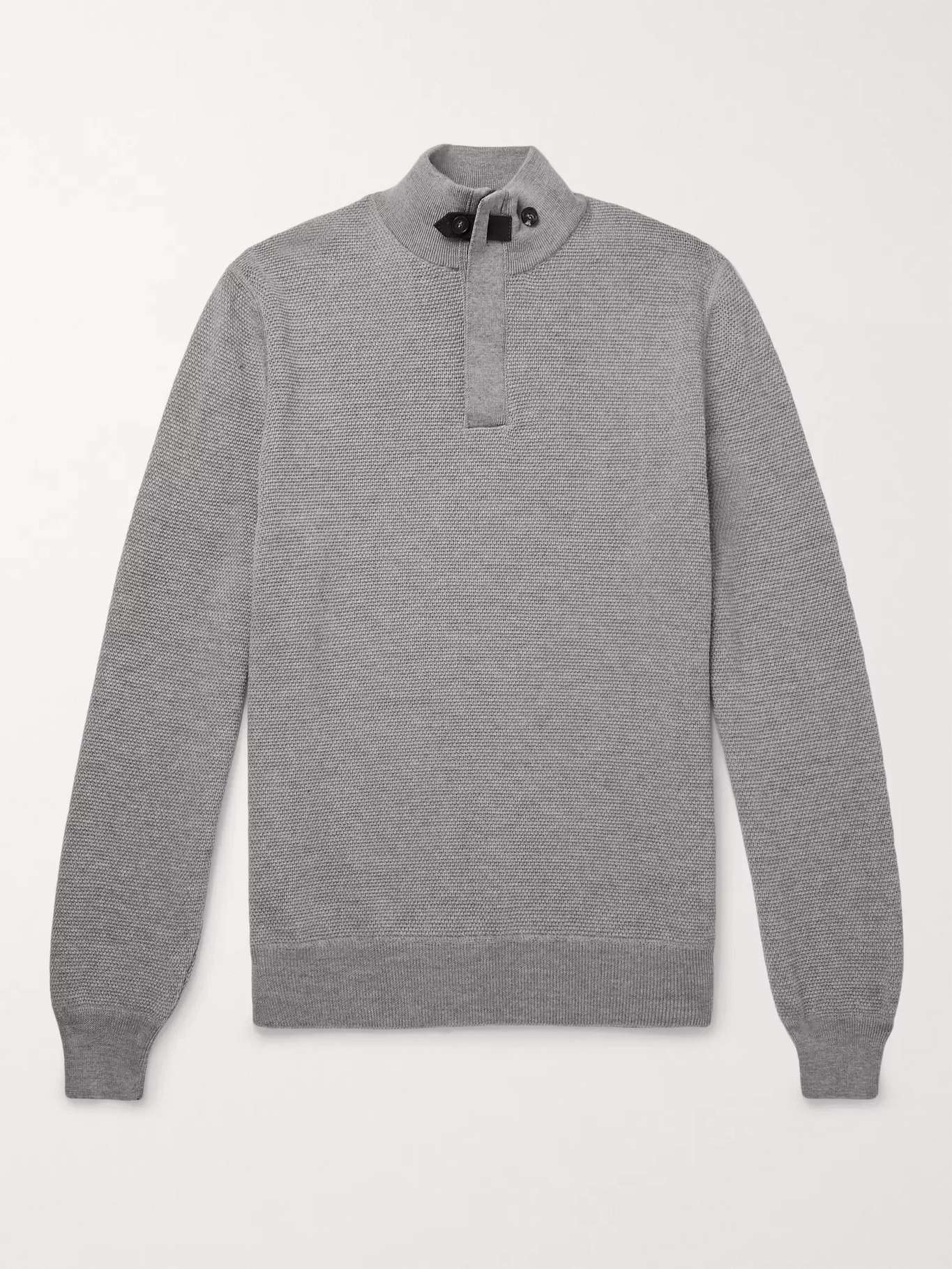 ZEGNA Slim-Fit Suede-Trimmed Waffle-Knit Wool Half-Zip Sweater