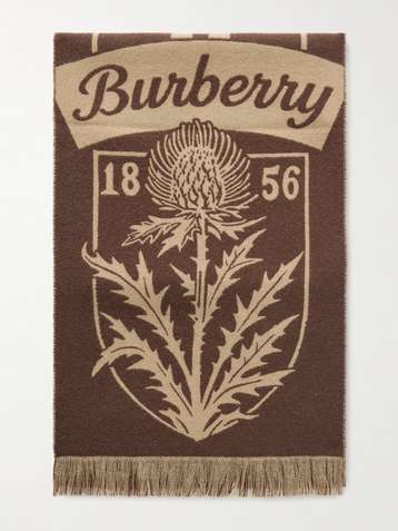 Logo-Jacquard Fringed Wool Scarf