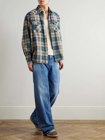 Slim-Fit Checked Cotton and Linen-Blend Shirt