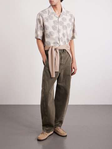 Ole 5396 Camp-Collar Printed Linen and Cotton-Blend Shirt