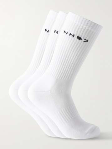 Three-Pack Logo-Jacquard Ribbed Cotton-Blend Socks