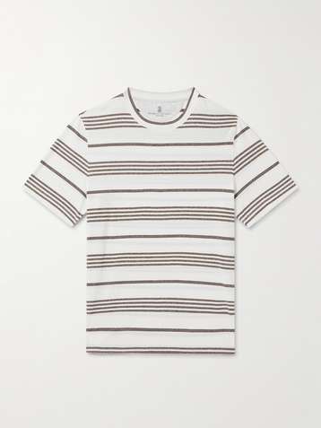 Earn your stripes and wear them proudly. Rock the timeless trend of a striped T-shirt with our collection from Brunello Cucinelli. Using fabrics such as cotton and linen, this label's lineup of striped T-shirts is driven by attention to detail and quality. You'll discover other top buys from Brunello Cucinelli at MR PORTER. Once you've found your favourite striped T-shirt, find something in its in-demand range of plain T-shirts.