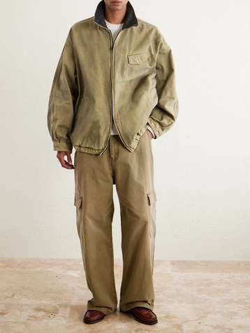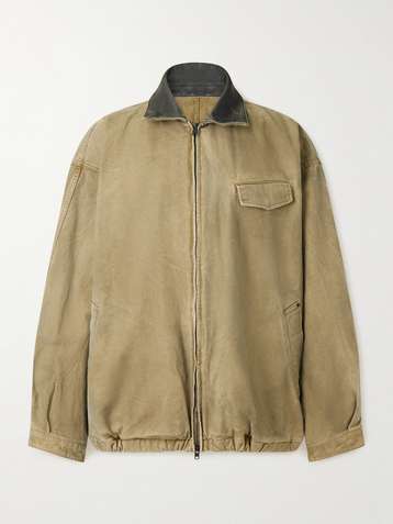 Leather-Trimmed Sulfur-Dyed Cotton Jacket