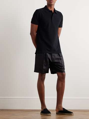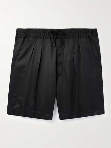 Straight-Leg Pleated Silk-Twill Drawstring Shorts