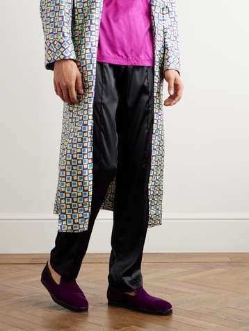 Neal Grosgrain and Leather-Trimmed Velvet Slippers