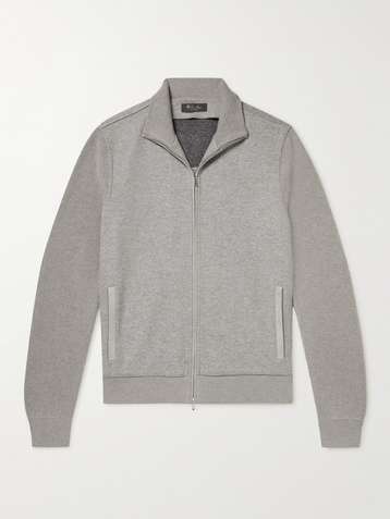 Suede-Trimmed Cashmere-Blend Zip-Up Cardigan
