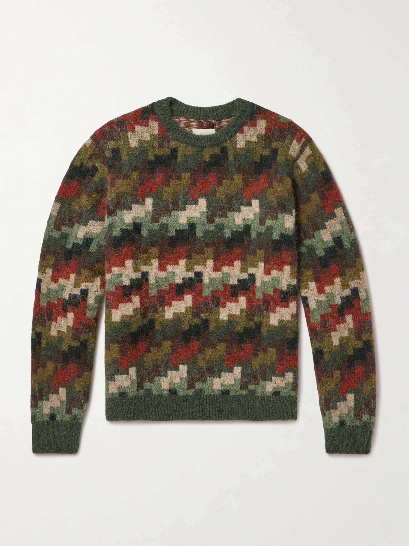 AIMÉ LEON DORE Camouflage-Print Houndstooth Alpaca-Blend Sweater