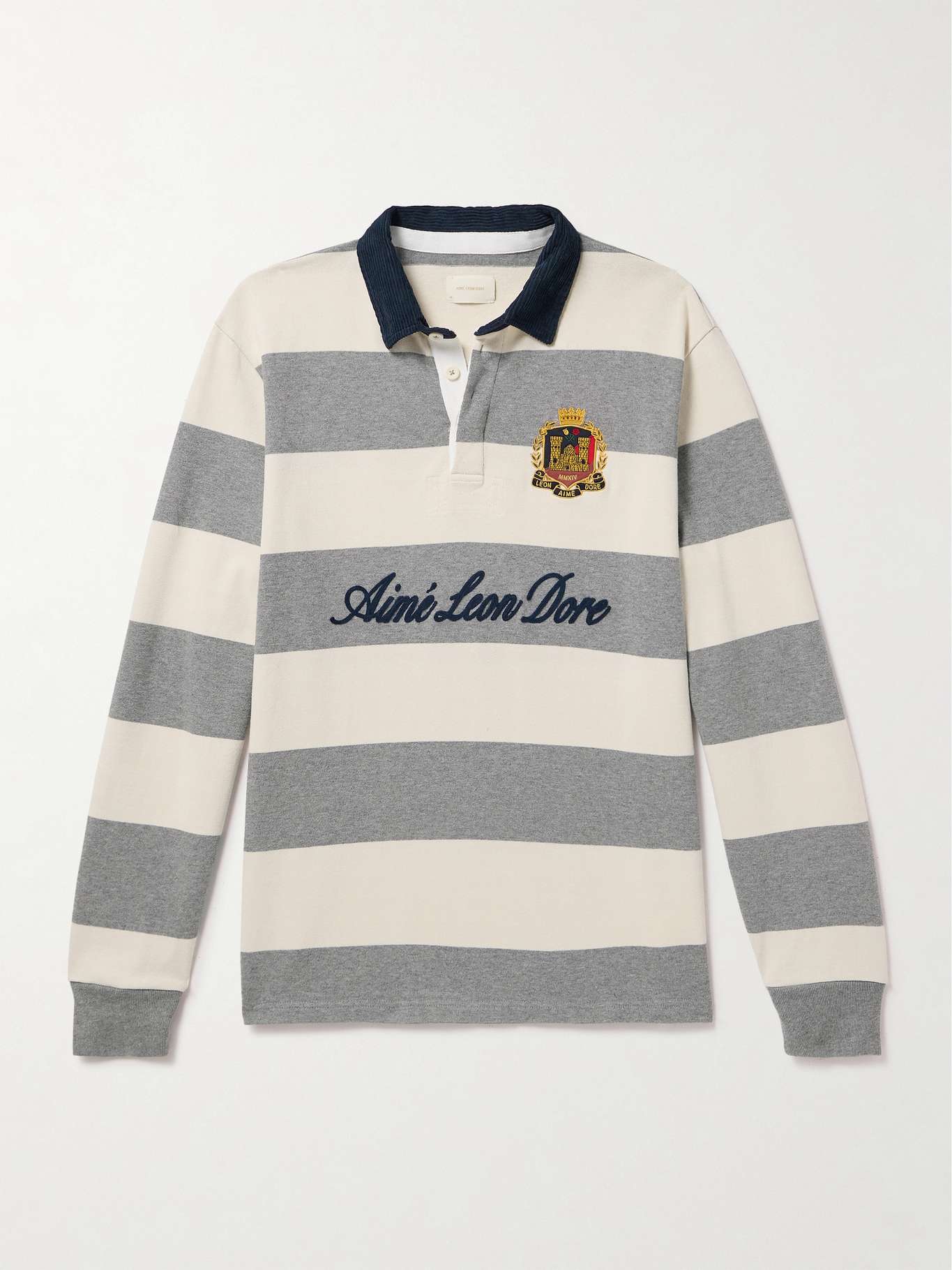 Classic rugby styles inspire Aimé Leon Dore's shirt. Made from cotton-jersey patterned with horizontal stripes, it's flocked with the label's logo and detailed with a crest at the chest and the number '56' on the back.
