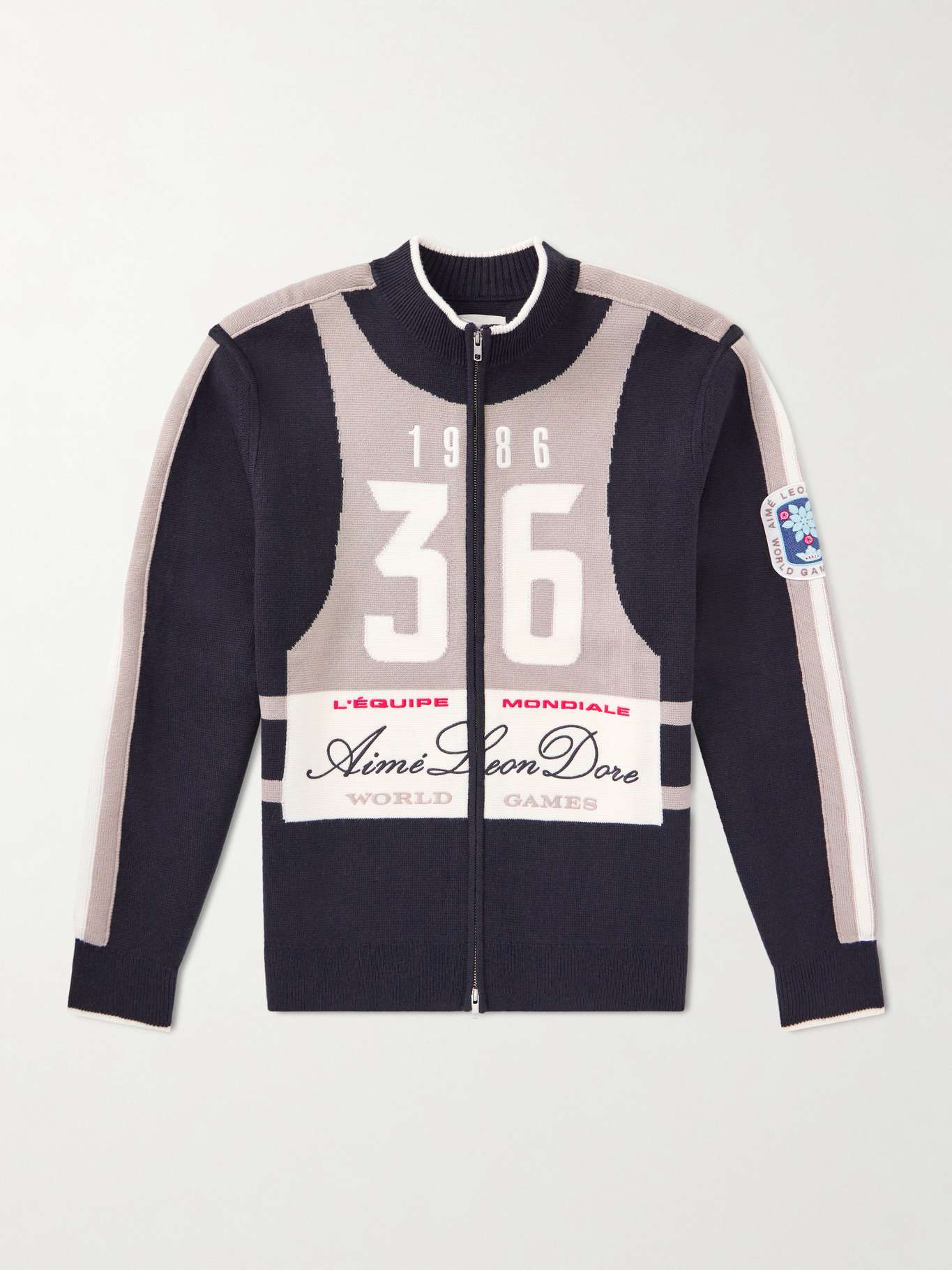 AIMÉ LEON DORE Logo-Jacquard Wool Zip-Up Sweater