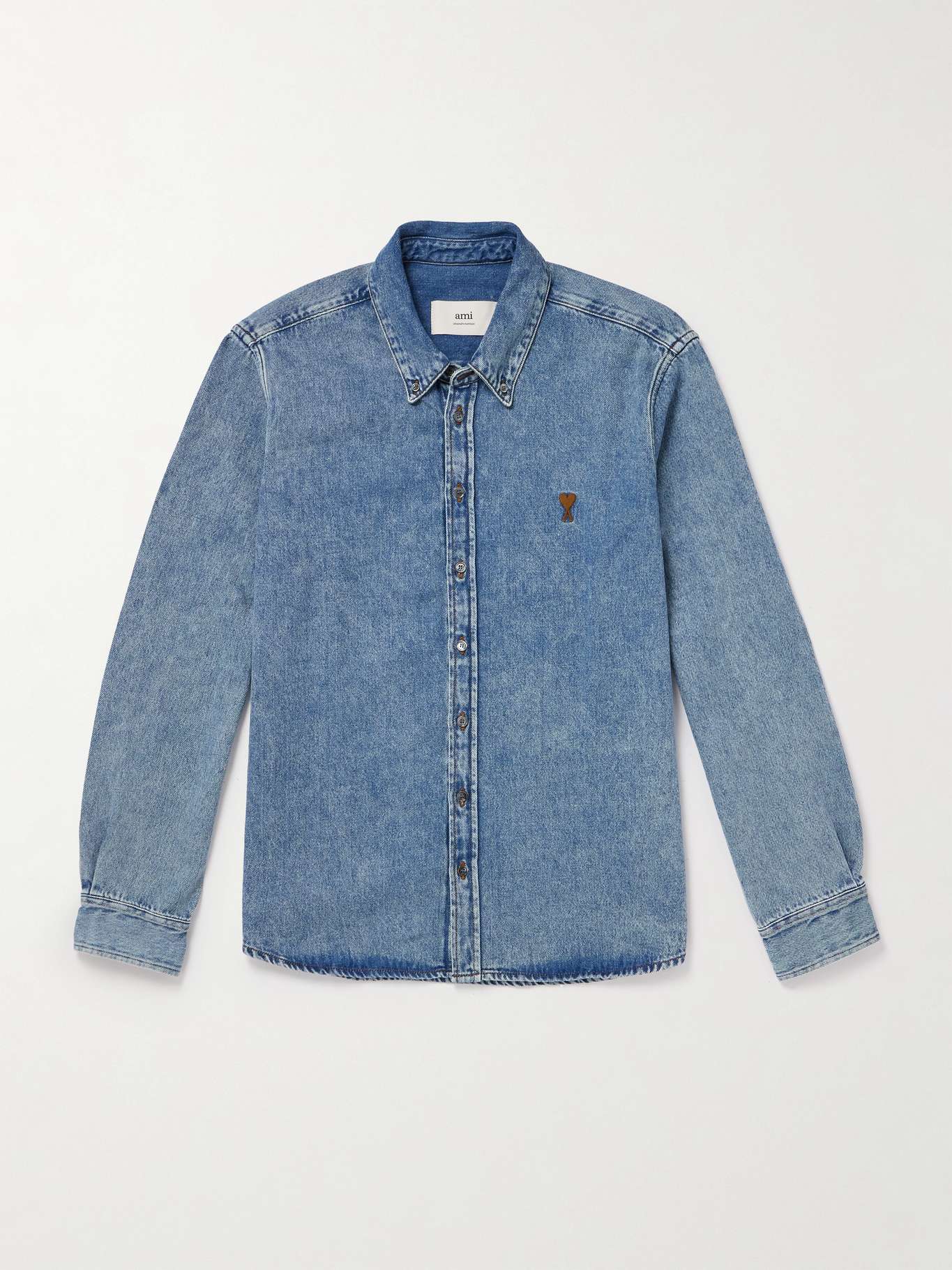 AMI PARIS Button-Down Collar Logo-Embroidered Denim Shirt