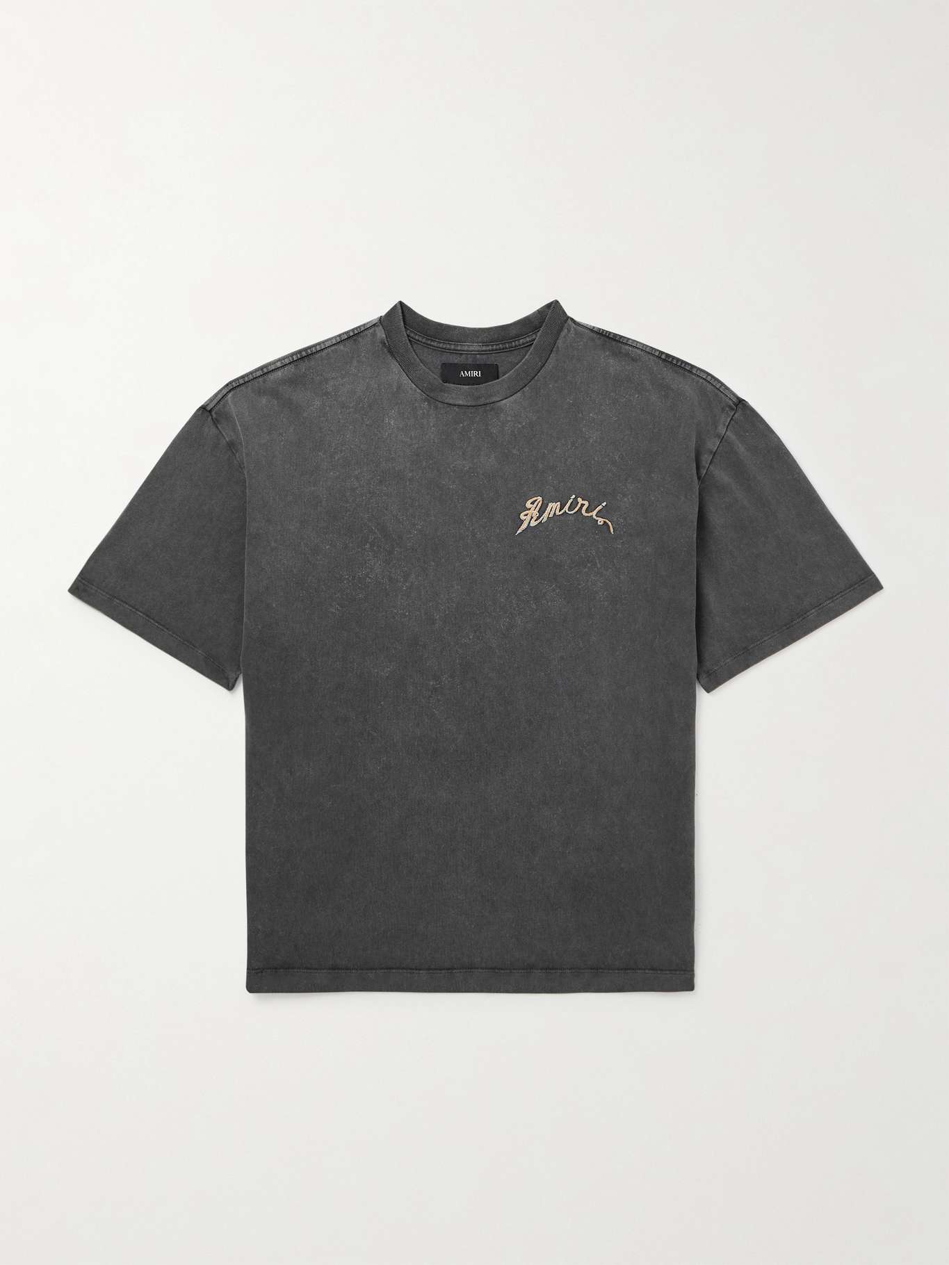 AMIRI's AW25 collection showcases T-shirts embroidered with motifs drawn from "true vintage rediscovered from former eras." Crafted in Italy from garment-dyed cotton-jersey, this one has a heavy fade and a striking dragon graphic on the back.