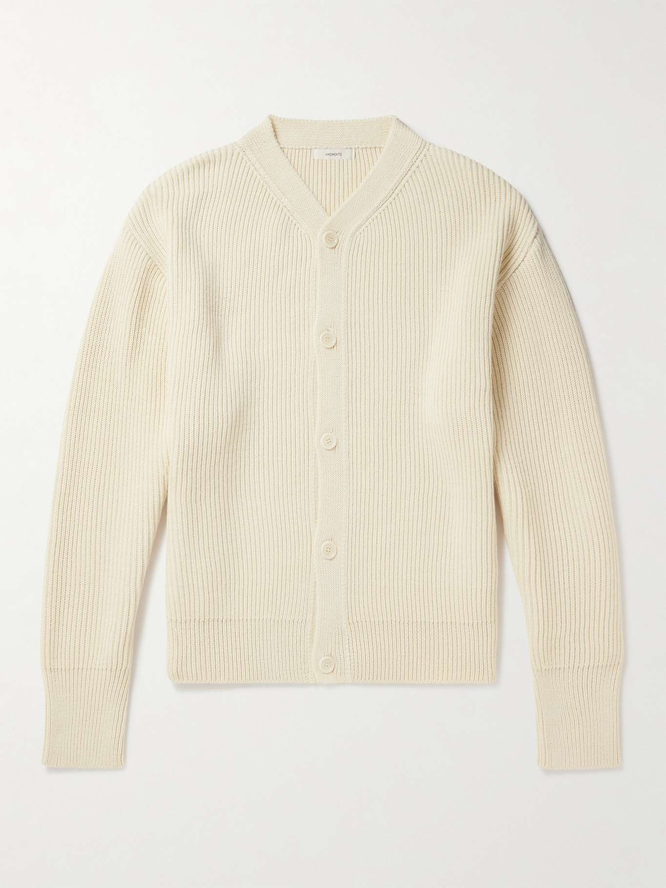Amomento gravitates towards clean lines and oversized silhouettes, and this ribbed cardigan illustrates just that. Made from a substantial wool-blend, it has extra long sleeves that can be rolled up at the cuffs. Wear yours with baggy trousers in a darker neutral shade.