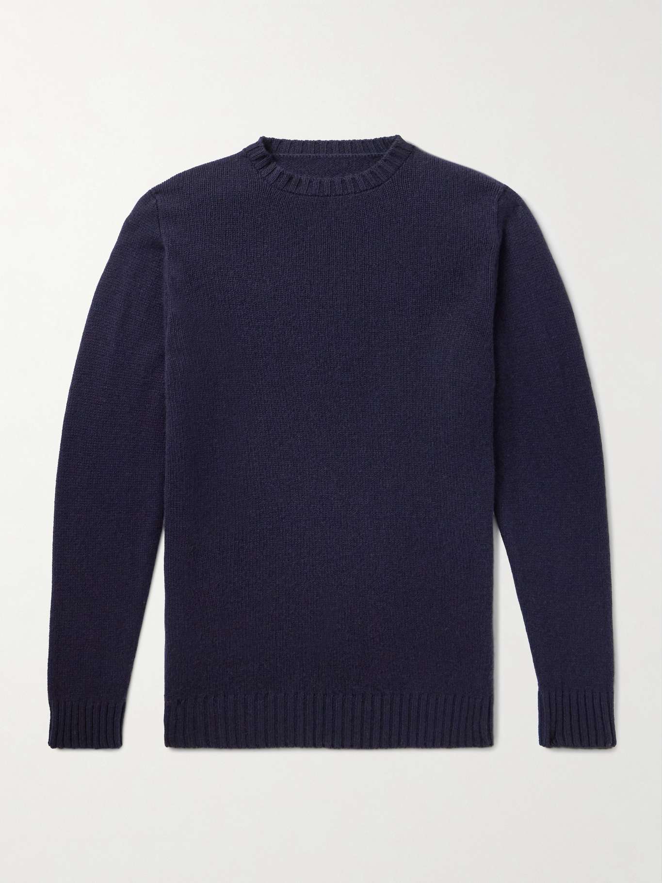 Anderson & Sheppard calls this sweater 'Super Soft' for its plush handle. It's been knitted in Scotland from midnight-blue cashmere and has ribbed trims to hold its shape. Store yours folded.