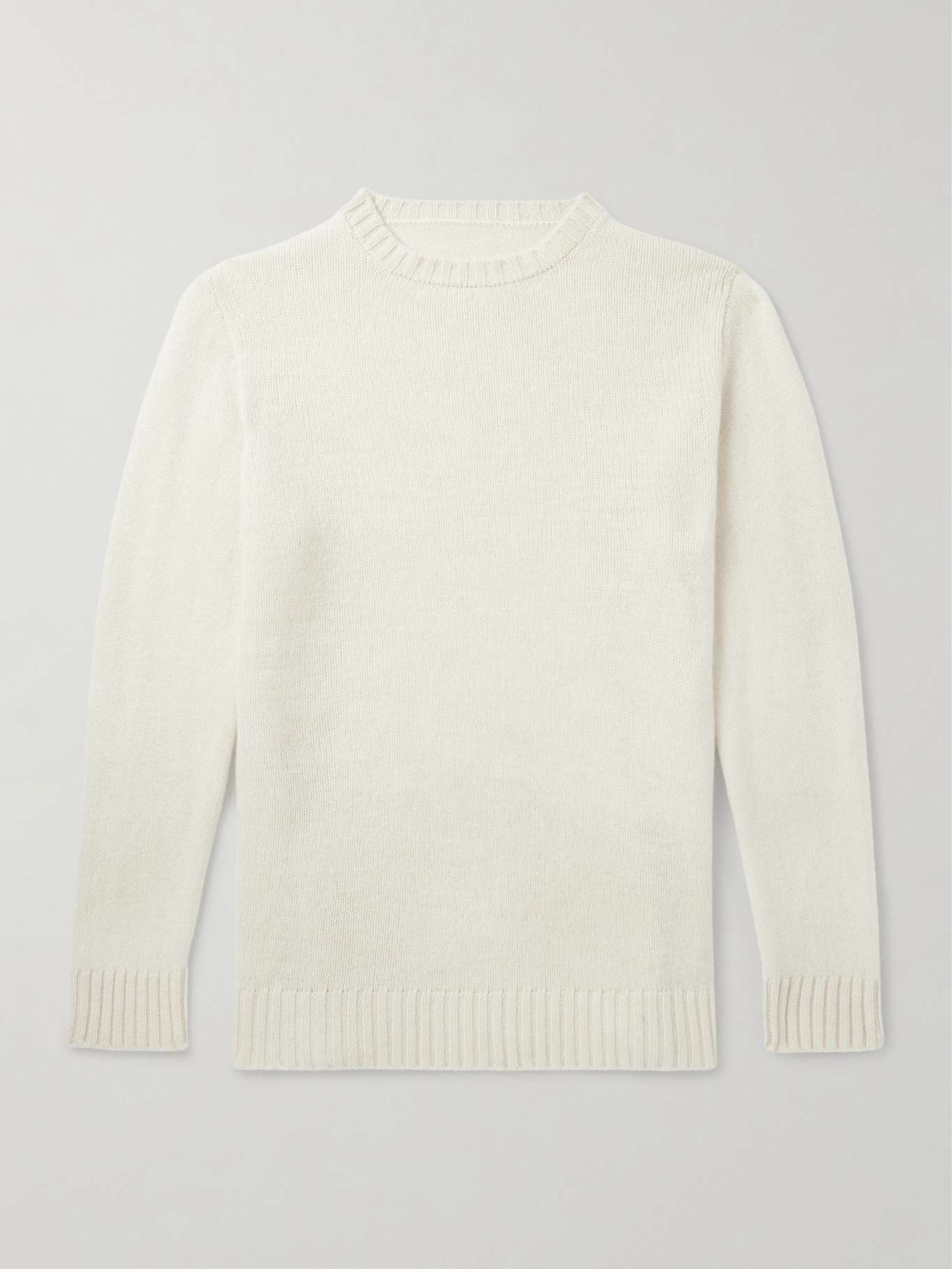 Anderson & Sheppard calls this sweater 'Super Soft' for its plush handle. It's been knitted in Scotland from ivory cashmere and has ribbed trims to hold its shape. Store yours folded.