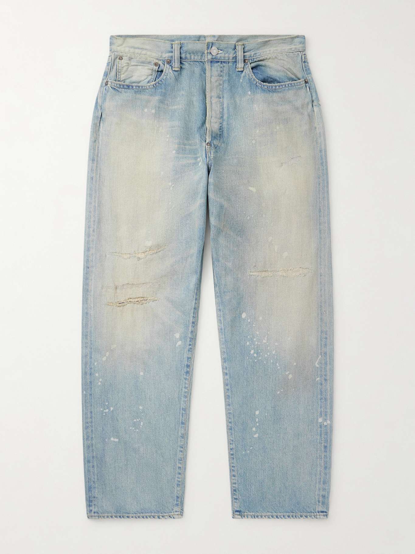 A.PRESSE's 'No. 37' jeans are distressed with rips and bleach stains to create the look of a worn-in pair. They're made from 13oz. denim and have an adjustable tab at the back, inspired by vintage styles.