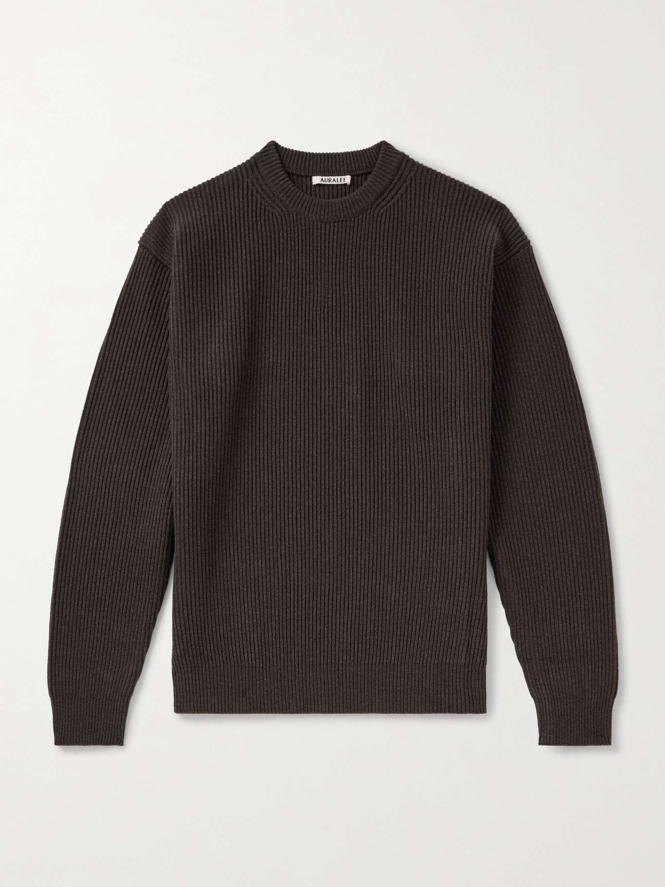 Don't overlook the technical prowess behind Auralee's sweater – its rib knitted on traditional looms in Japan from the softest wool. Keen eyes will notice the band of contrast stitches smartly tracing the crew neckline.