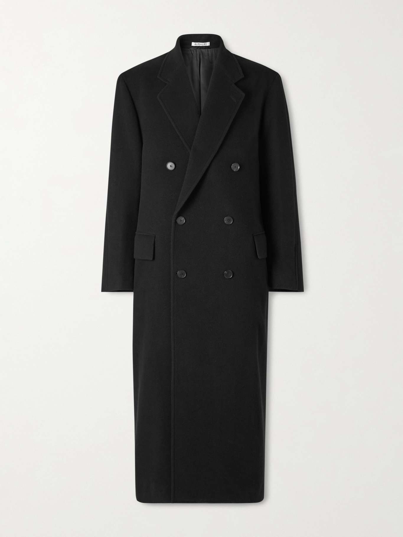 Modelled on classic Chesterfield styles, Auralee's coat has a timeless elegance. It's been made in Japan from heavy-duty wool, selected for its softness and warmth, and is cut in a longline double-breasted shape, framed by padded shoulders.