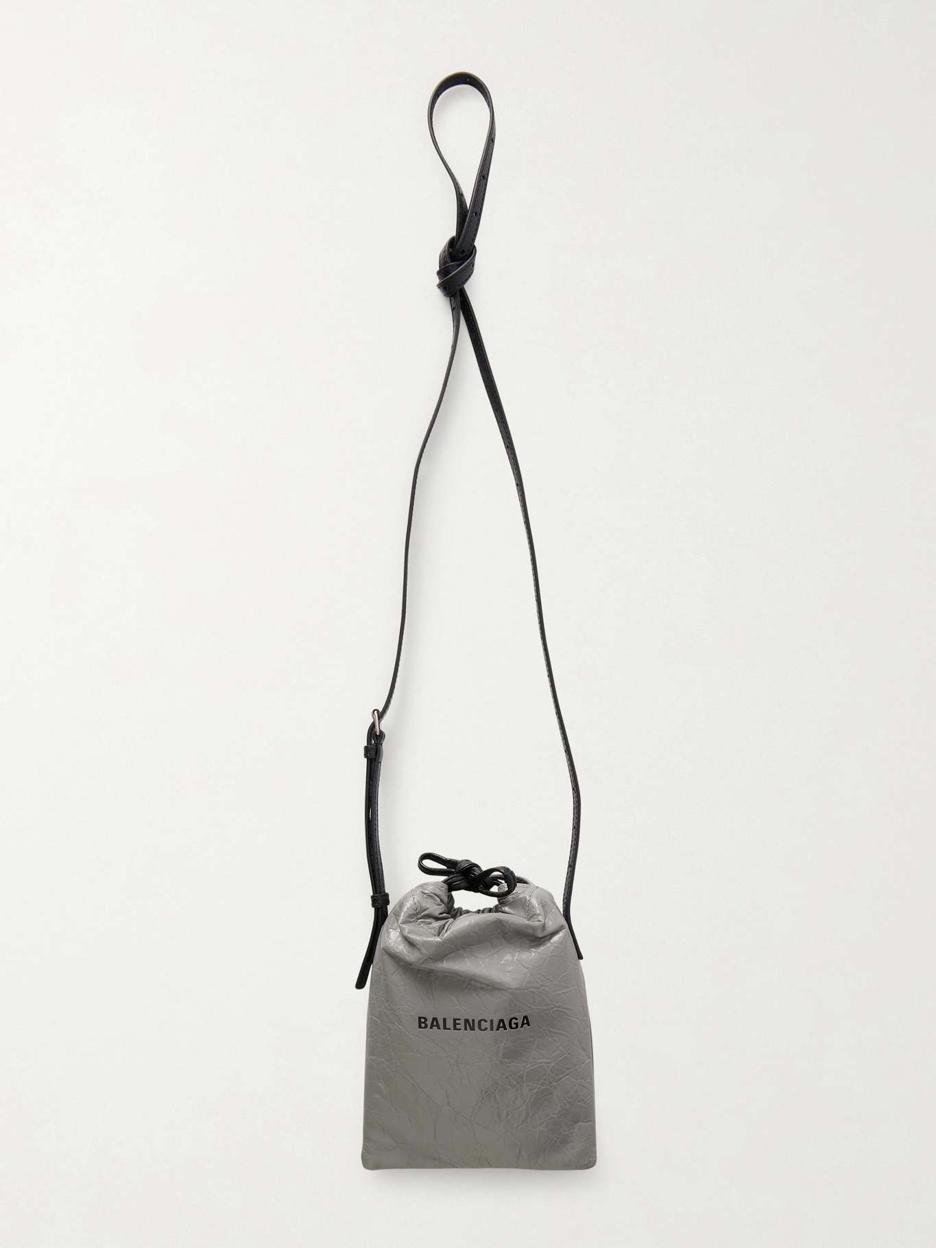 BALENCIAGA Shopper Logo-Debossed Crinkled-Leather Phone Pouch