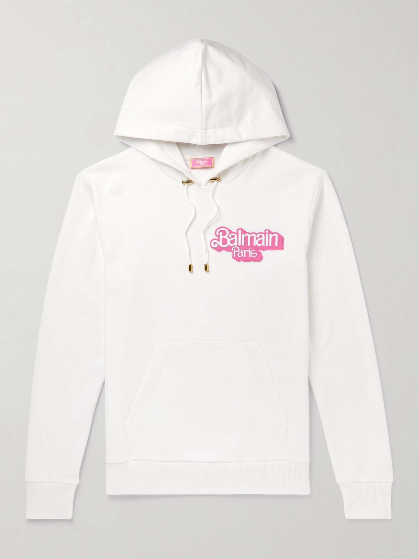 Parisian house Balmain teamed up with Barbie to create a '90s-inspired, unisex collection. This hoodie is made from soft organic cotton-jersey and appliquéd with a rubber logo patch in the doll's recognisable script. The drawstrings have are tipped with polished gold-tone caps that add a touch of refinement.