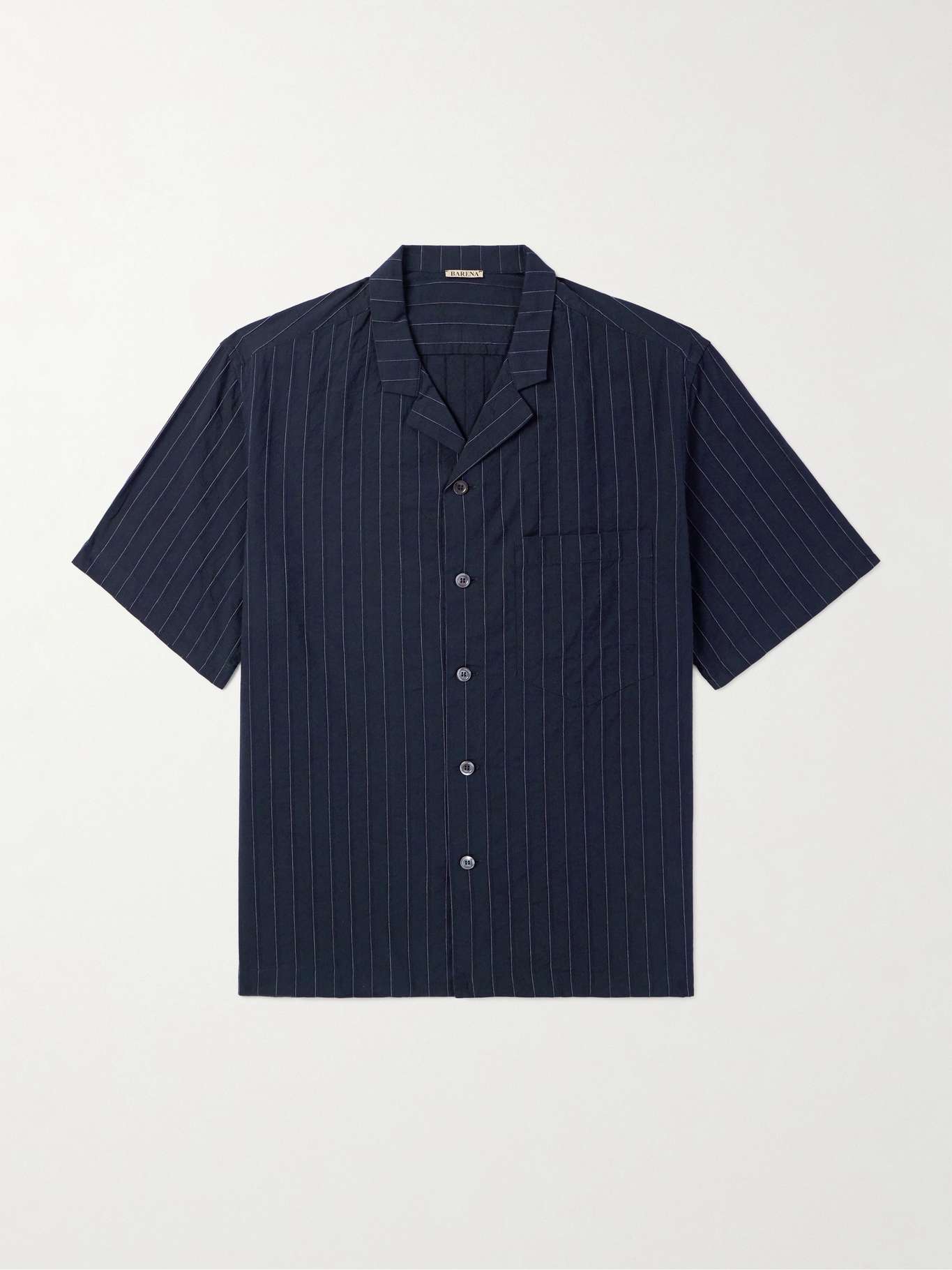BARENA Bagolo Camp-Collar Pinstriped Crinkled Cotton-Poplin Shirt
