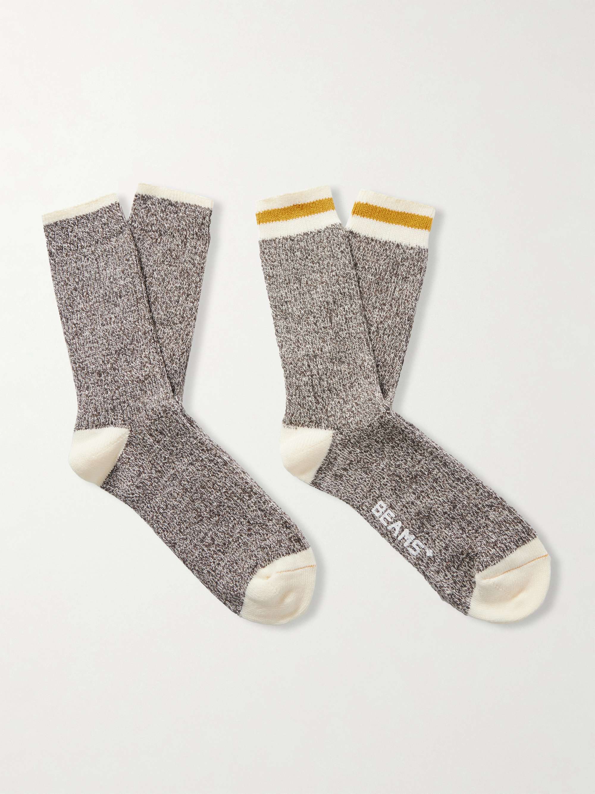 • BEAMS PLUS Rag Two-Pack Striped Ribbed-Knit Socks