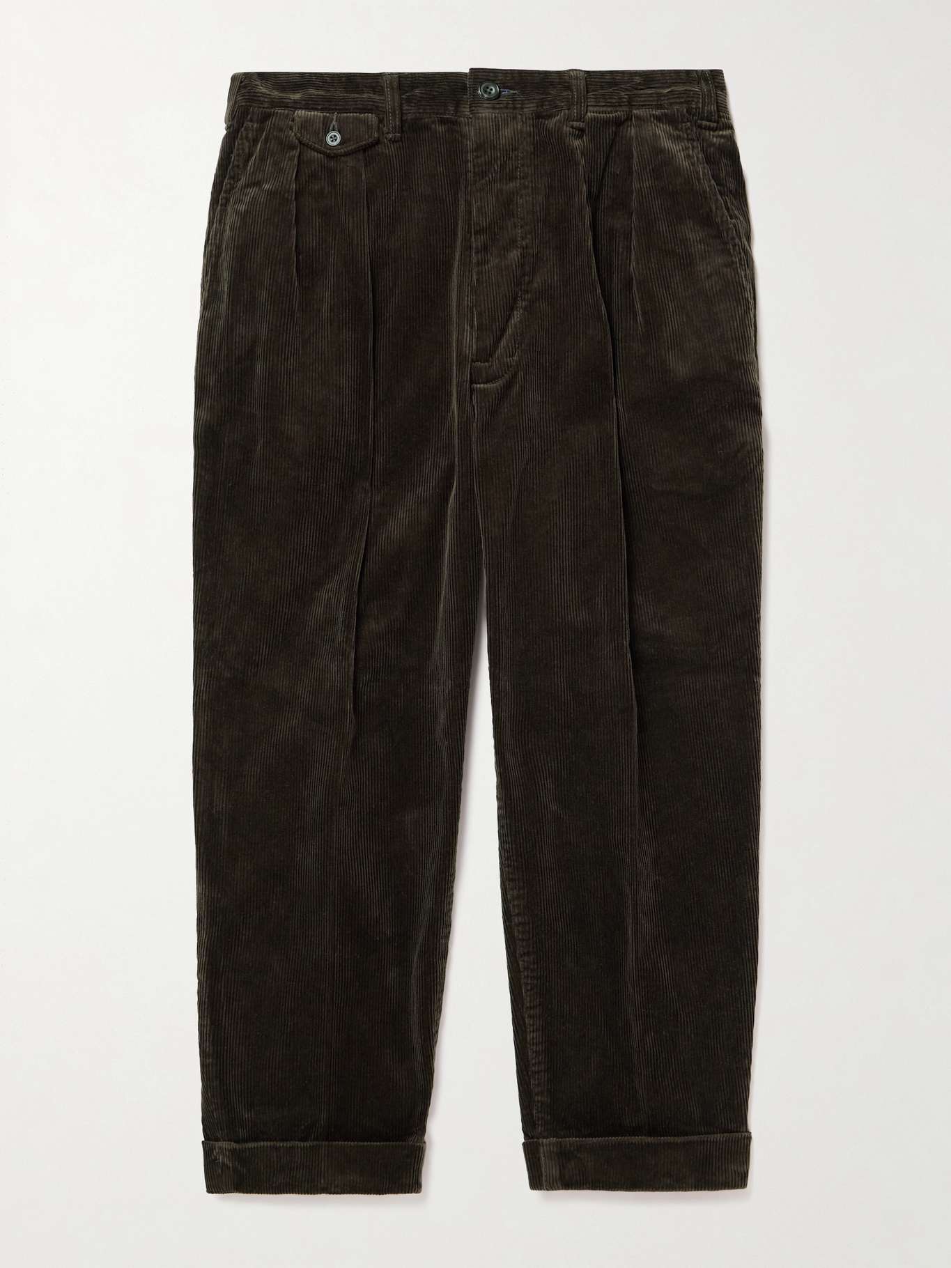 BEAMS PLUS Cropped Pleated Cotton-Corduroy Trousers