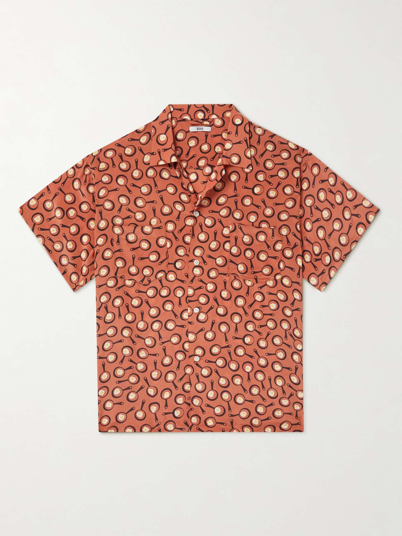 EXCLUSIVE AT MR PORTER. Historical techniques and fabrics are the starting point for BODE's unique collections. This camp-collar shirt is cut from silk crepe de chine for a naturally relaxed fit. Not taking things too seriously, it's printed with repeat pans with eggs sunny side up.