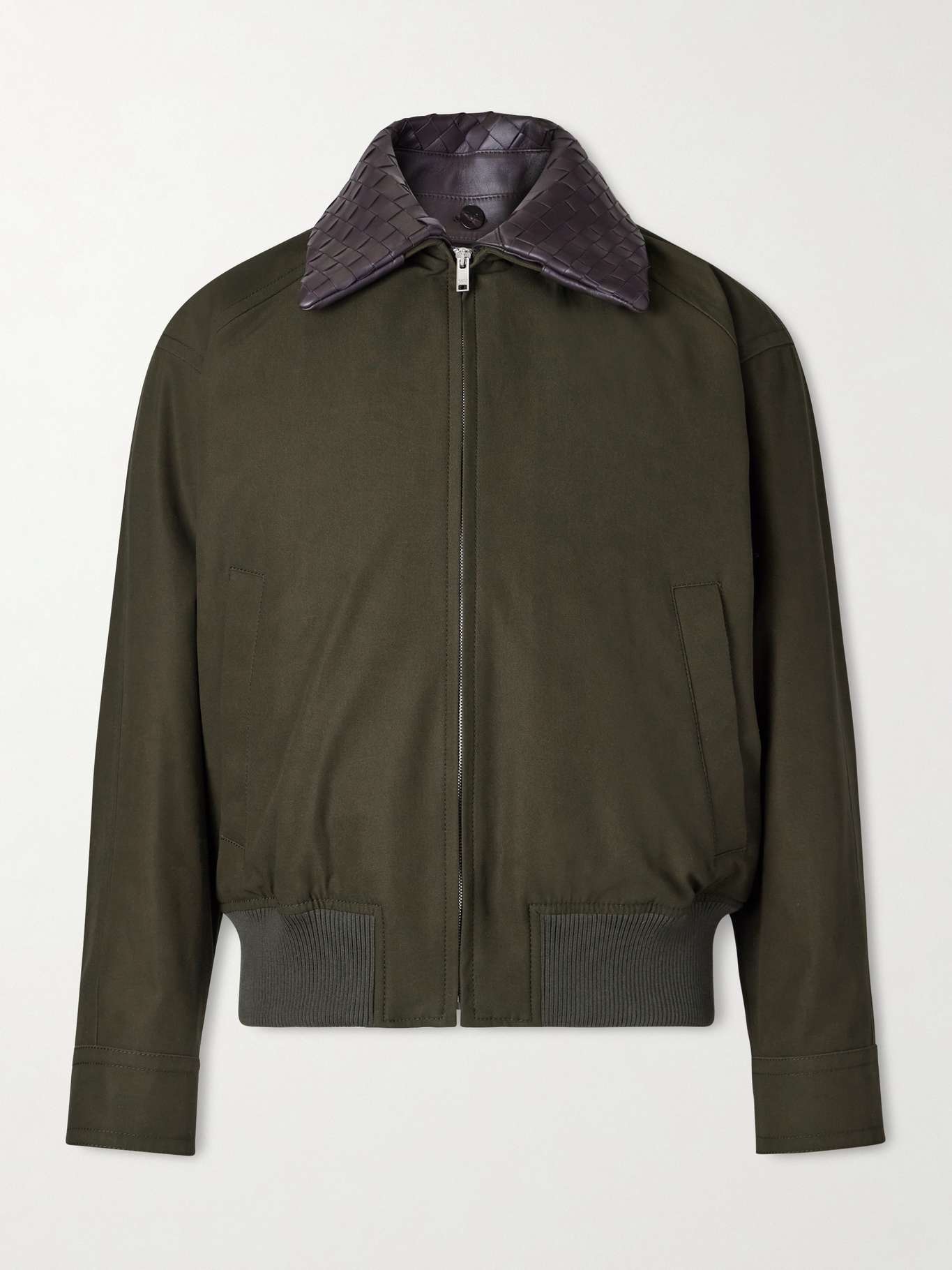 BOTTEGA VENETA Intrecciato Leather-Trimmed Cotton-Twill Blouson Jacket