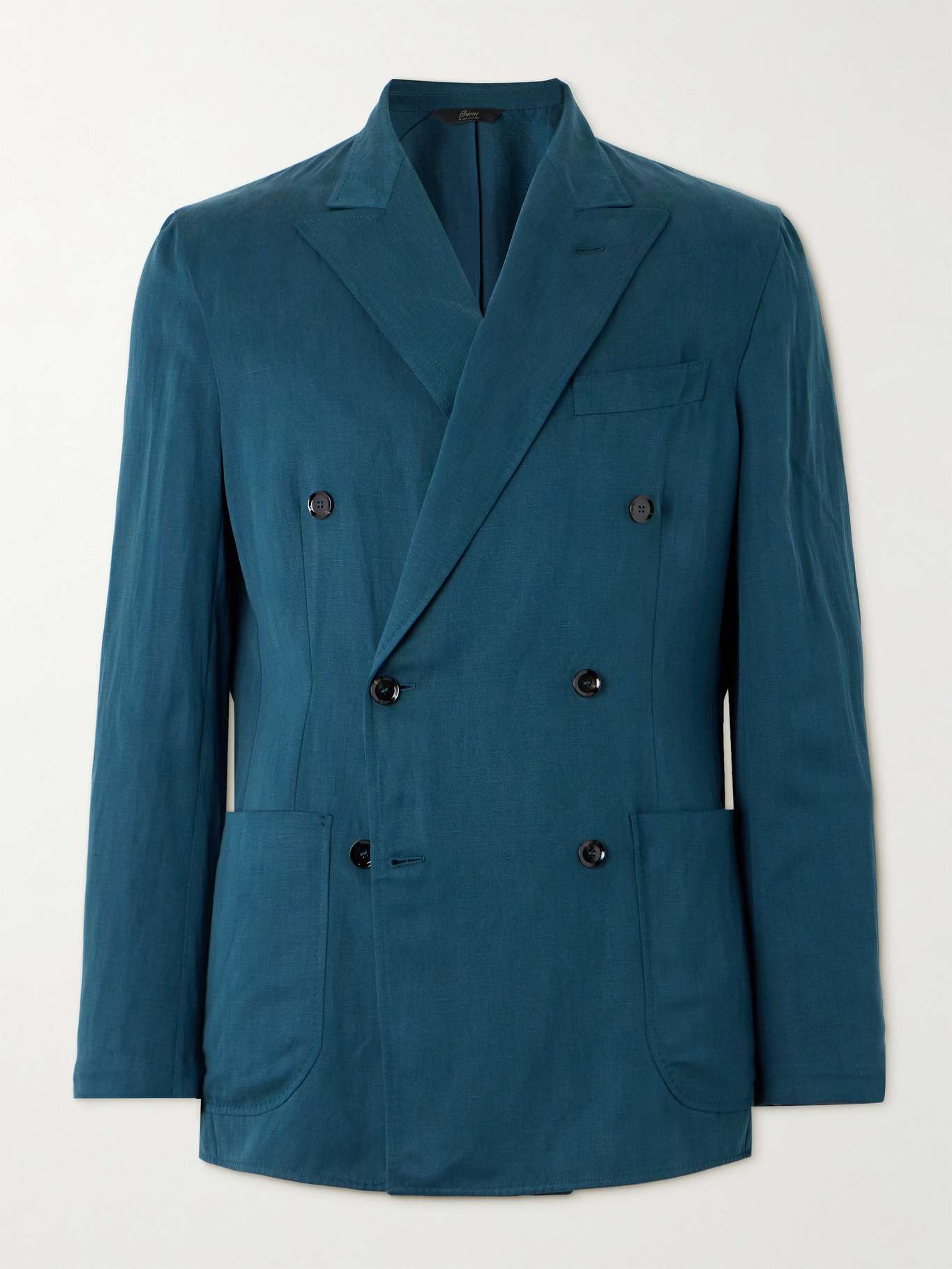 BRIONI Unstructured Double-Breasted Silk and Linen-Blend Blazer