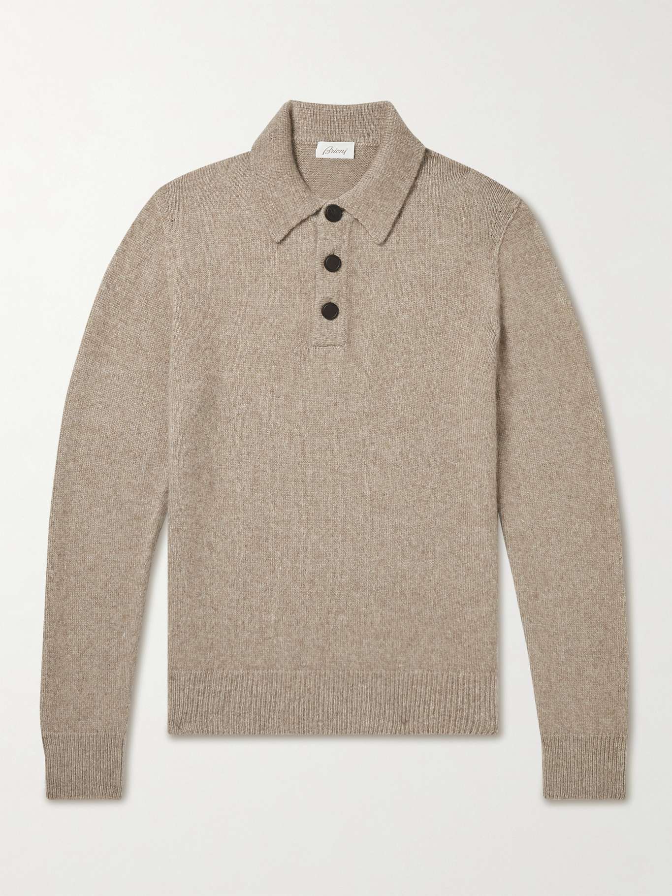 Polo shirts are always a worthwhile investment - they help bridge the narrow gap between smart and casual dressing. Impeccably made, Brioni's is woven from a soft cashmere and silk-blend that imparts a subtle lustre. It's threaded with chunky leather buttons.