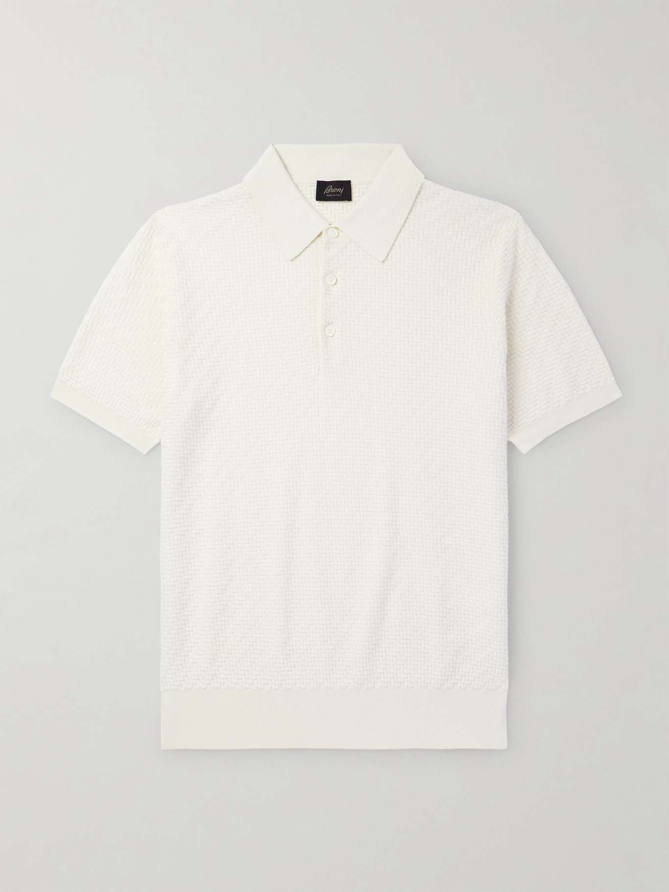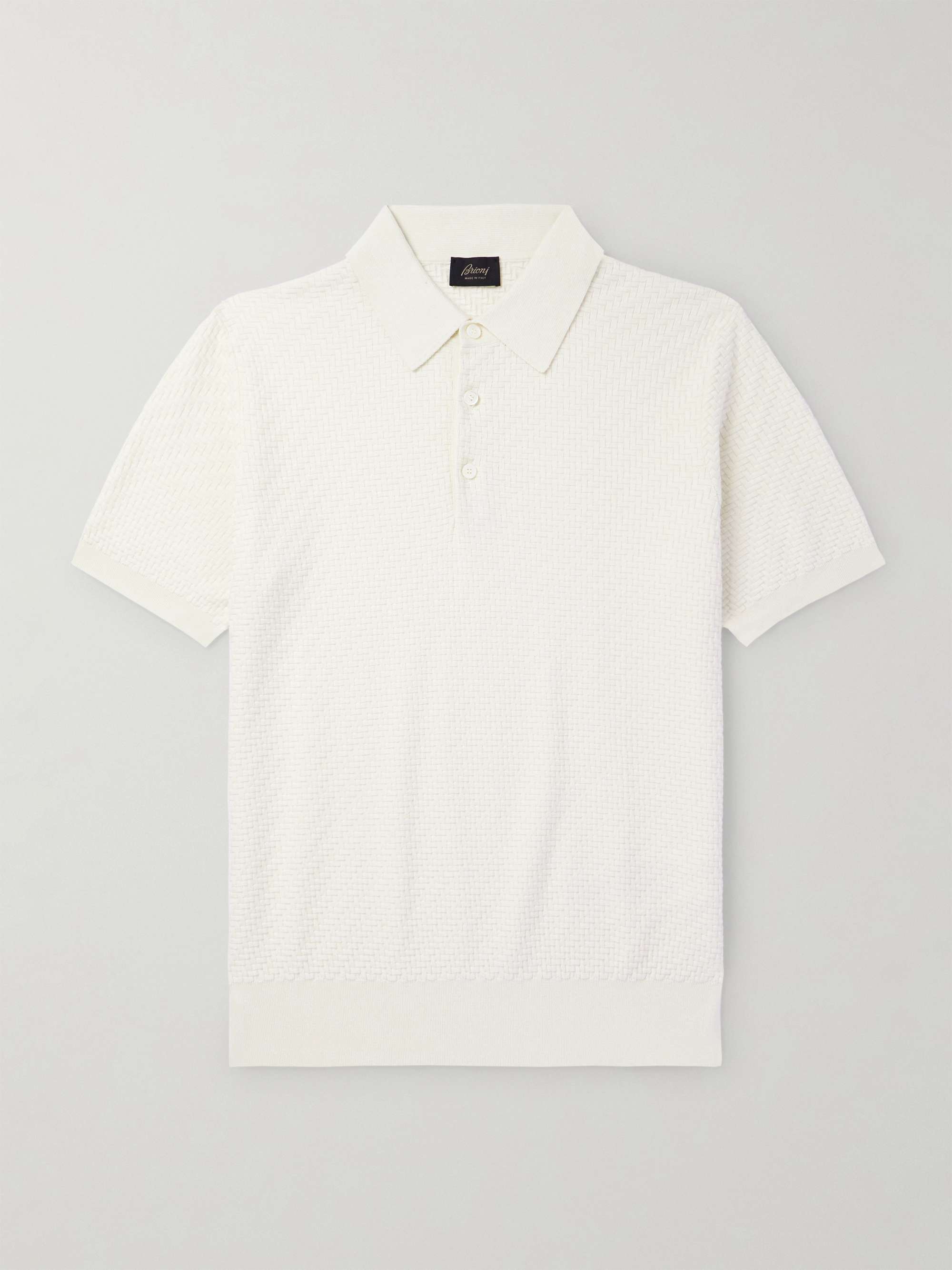 BRIONI Slim-Fit Basketweave Cotton, Silk and Cashmere-Blend Polo Shirt