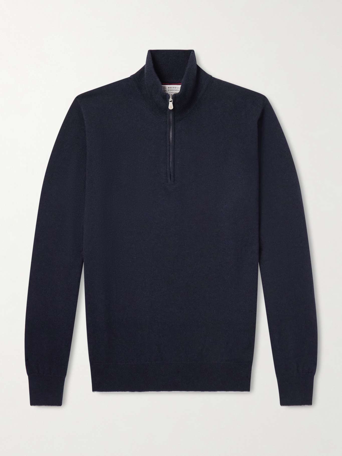 BRUNELLO CUCINELLI Contrast-Tipped Cashmere Half-Zip Sweater