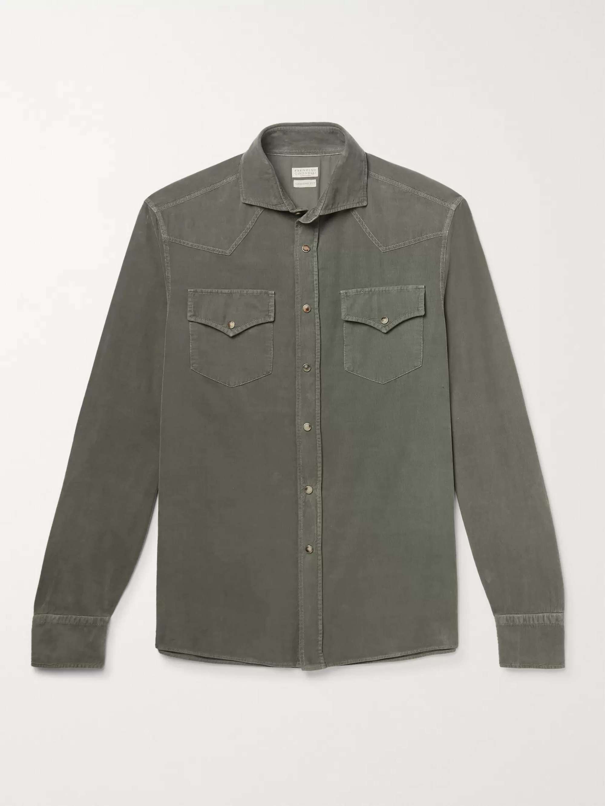 BRUNELLO CUCINELLI Cutaway-Collar Cotton-Corduroy Western Shirt