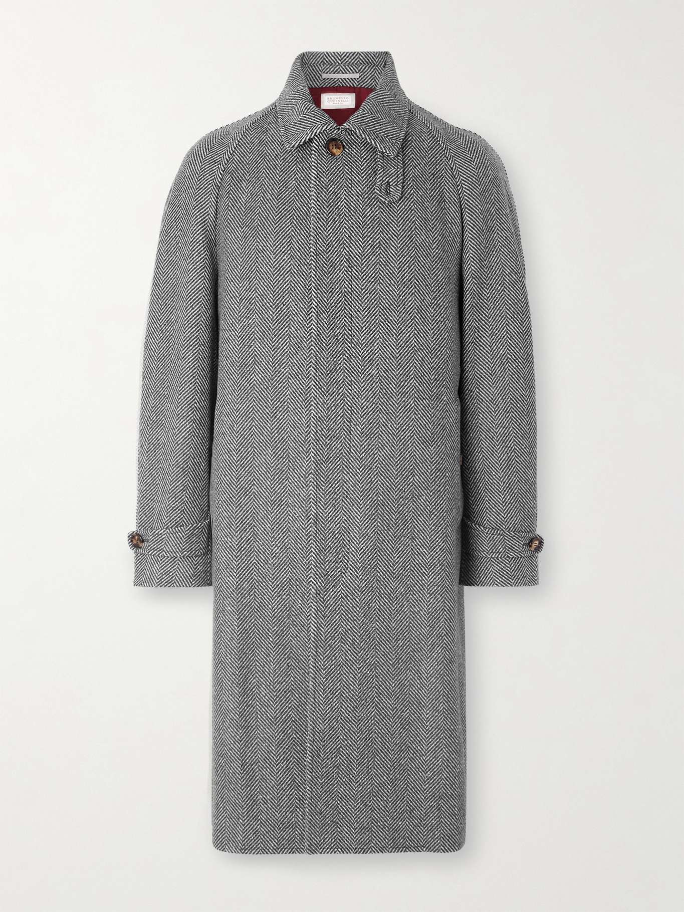 BRUNELLO CUCINELLI Herringbone Wool, Silk and Cashmere-Blend Coat