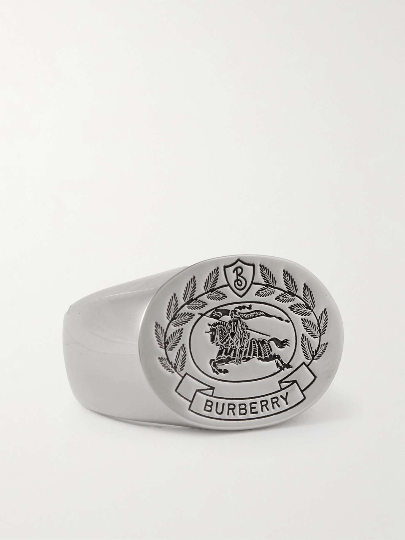 BURBERRY Logo-Engraved Palladium-Plated Signet Ring