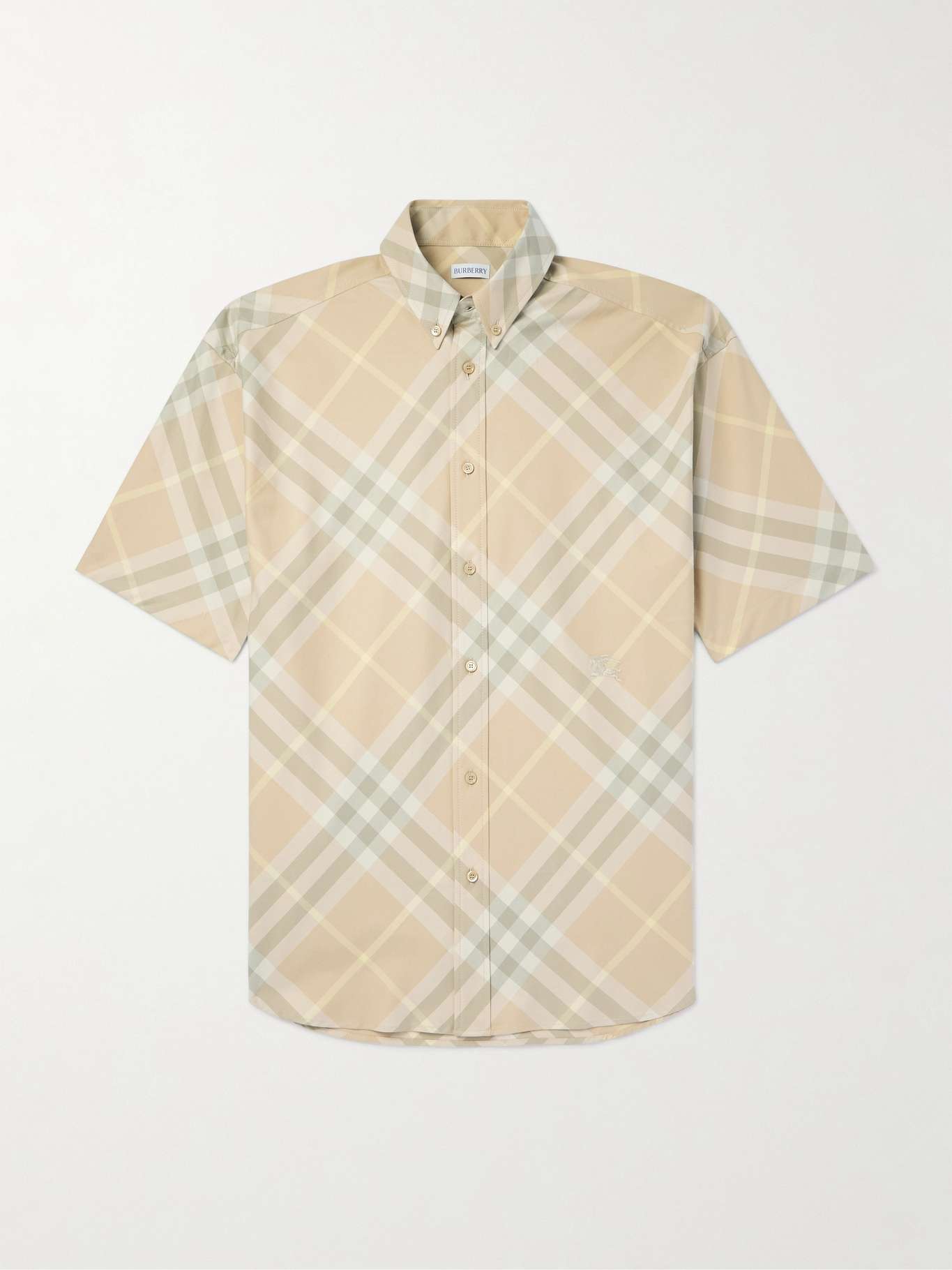 BURBERRY Button-Down Collar Logo-Embroidered Checked Cotton-Twill Shirt