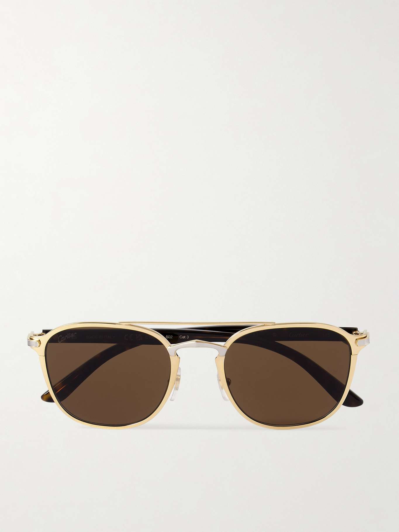 Cartier Eyewear's sunglasses are designed with the same attention to detail as its signature jewellery. This pair is made from contrasts of gold- and palladium-tone metal with a slim double bridge and tortoiseshell acetate arms.