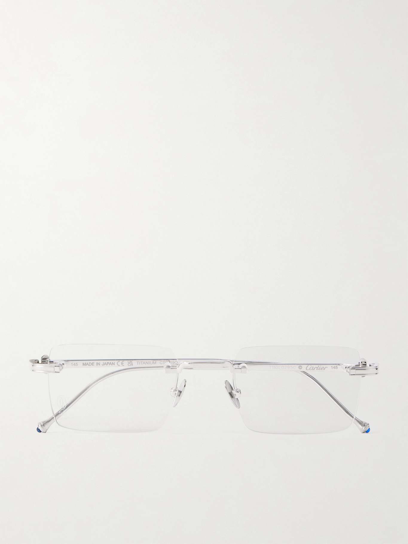 CARTIER EYEWEAR Pasha de Cartier Rectangular-Frame Rimless Silver-Tone Optical Glasses