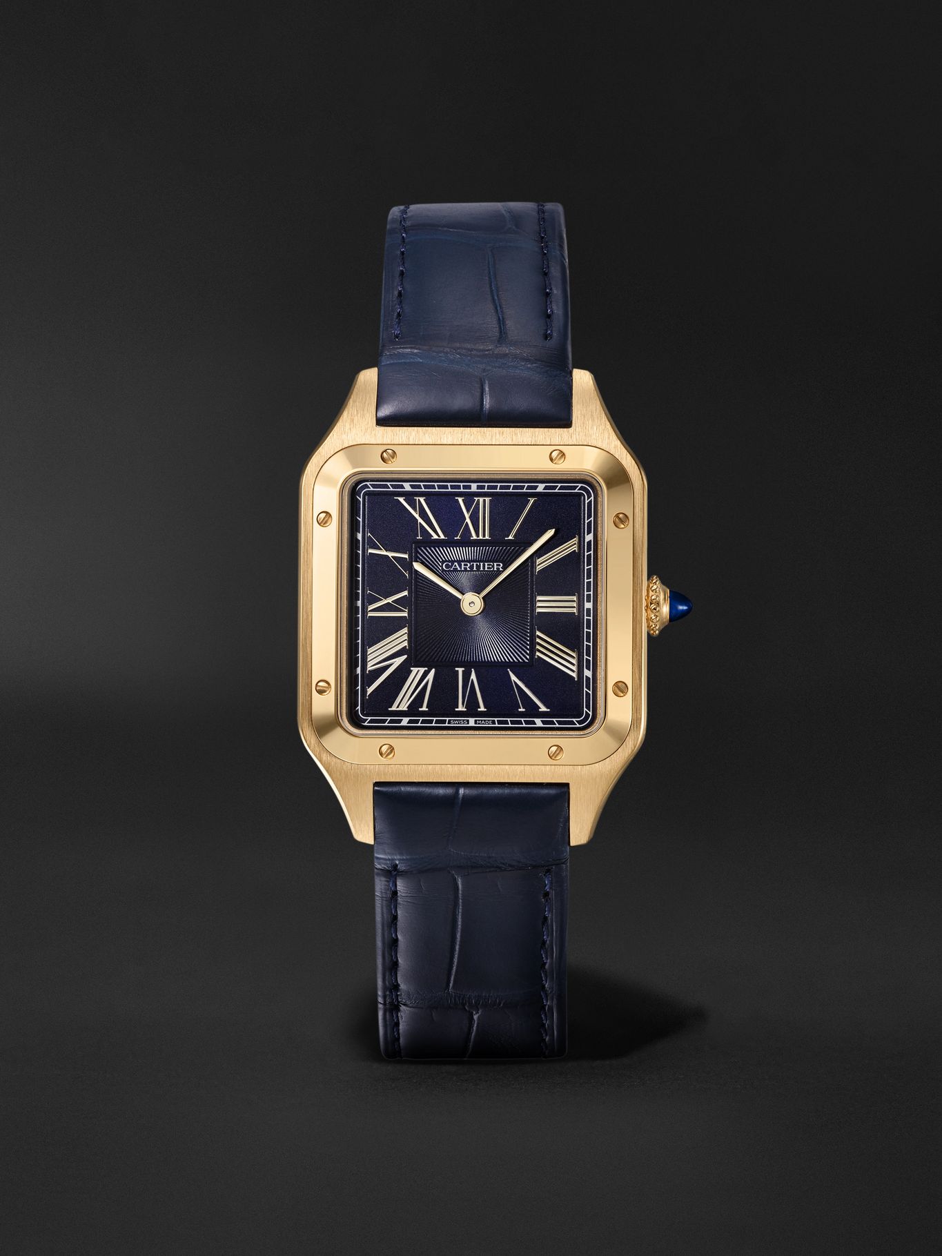 CARTIER Santos-Dumont Large 43.5mm 18-Karat Gold and Alligator Watch, Ref. No. CRWGSA0115